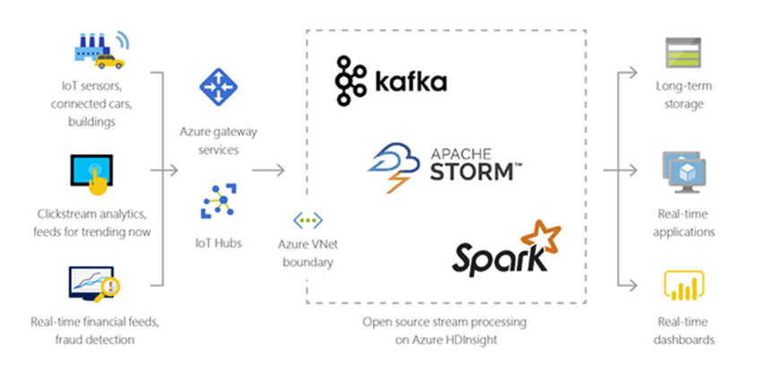 | Apache Storm | A distributed, real-time computation system for processing large streams of data fast. Storm is offered as a managed cluster in HDInsight. |